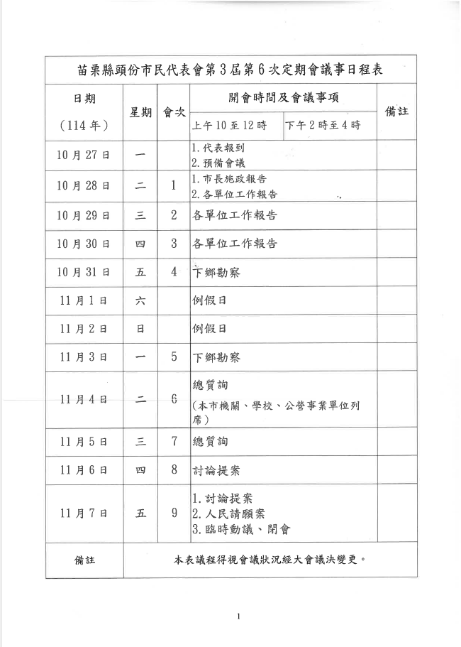 第3屆第6次定期會議事日程表